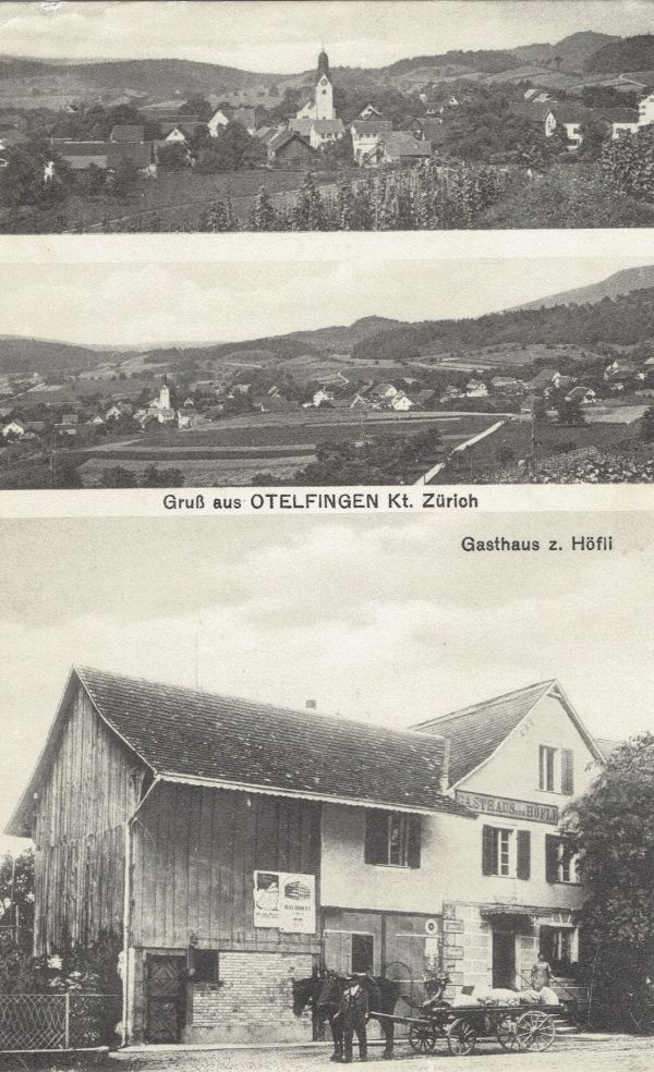 3-Bild-Ansichtskarte „Gruss aus Otelfingen“. Datiert vom 13.11.1913 und verschickt nach Zollikerberg ZH.