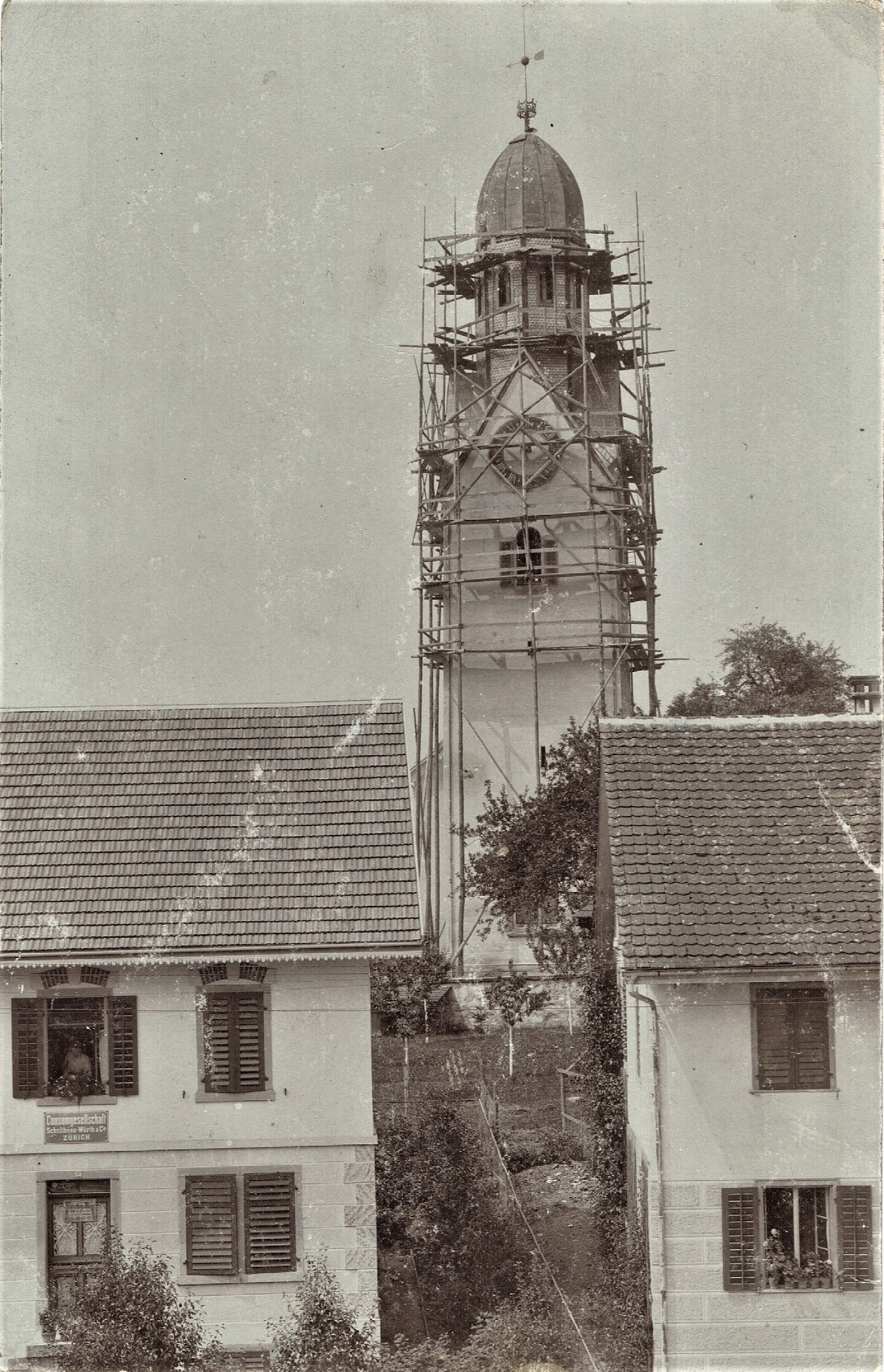 1912 war das Haus Hinterdorfstrasse 24 abgebrannt, und dabei hatten sich die gemeindeeigenen Feuerlöscheinrichtungen als ungenügend erwiesen. Insbesondere fehlte es an einem leistungsfähigen Leitungsnetz und an der nötigen Anzahl Hydranten. Das Bezirksstatthalteramt in Dielsdorf wies darauf die Gemeinde an die Versorgung des Dorfes mit Löschwasser deutlich auszubauen. Anlässlich der Inbetriebnahme des 1914/1915 neu gebauten Reservoirs Ghei und der neuen Hydranten zeigte die Feuerwehr der Bevölkerung 1915 an der Mühlegasse, mit welchem Wasserdruck zukünftig Brandfälle erfolgreich bekämpft werden können. Und sicher auch um zu beweisen, dass die eingesetzten Gemeindefinanzen sinnvoll investiert waren.