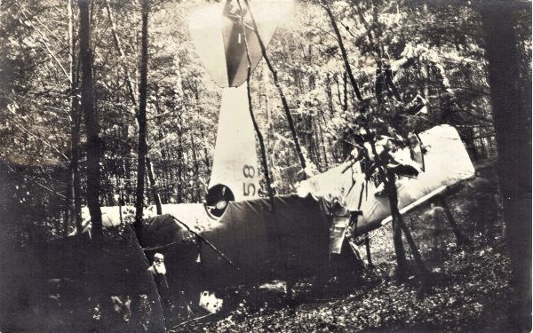 Flugzeugabsturz vom 30.7.1926, Unfallstelle „im Tüftel“. Der Pilot Abraham Boner wurde dabei nur leicht verletzt, starb aber 1927 bei einem weiteren Absturz in Dübendorf.