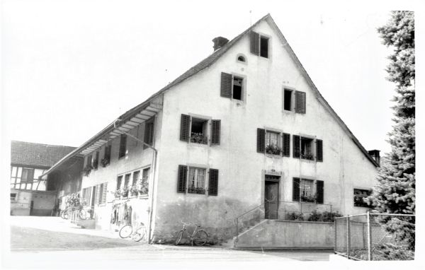 Die frühere, links am Wohnhaus angebaute Scheune wurde nach einem Brand 1913 abgerissen.