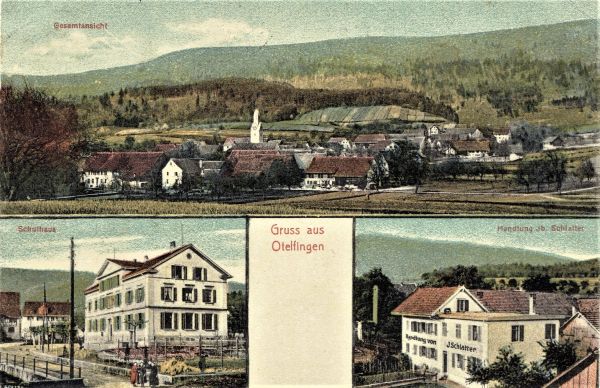 Privatansichtskarte mit Gasthof und Bäckerei zum Höfli. Der Verkaufsladen der Bäckerei besteht noch nicht. Beim Brotfuhrwerk ist Gastwirt und Bäcker Jakob Murbach mit Tochter zu sehen, am Brunnen erkennt man Rud. Duttweiler-Gassmann, rechts aussen am damals entlang des Höfli’s noch offengeführten Dorfbach steht Elise Duttweiler. Ganz links ist eine Ecke des 1911 abgebrochenen Trottgebäudes („Höfli-Trotte“ mit 6 Mitbesitzern) zu sehen. Trotz neuzeitlichen Veränderungen Gebäude von ortsbildprägendem Charakter.