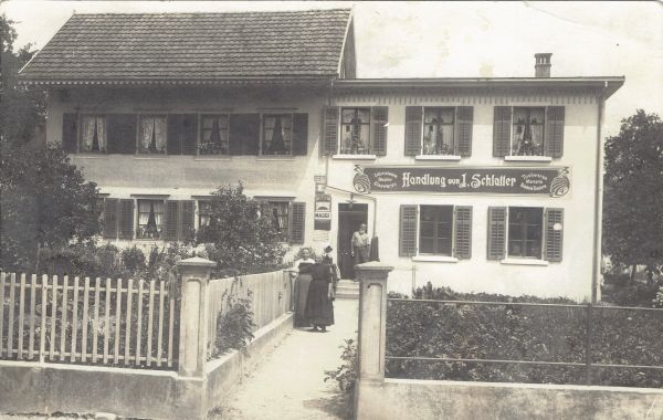 Auf der Ostseite ist am Gebäude ein Unterstand angebaut und rechts ist noch der Brunnen zu sehen, welcher vor der Brauerei und dem Restaurant Neuhaus (später Brauerei) steht. Die Strassen sind unasphaltiert.