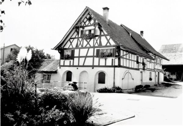 Baujahr 1780 als Doppelwohnhaus mit zwischenliegender Scheune. Im östlichen Anbau mit dem Flachdach war während des 2. Weltkrieges eine Soldatenstube eingerichtet.